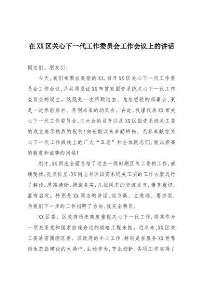 / 【七哥公文】2025年:在XX区关心下一代工作委员会工作会议上的讲话+更多免费公文+VX:QiGeGongWen2024