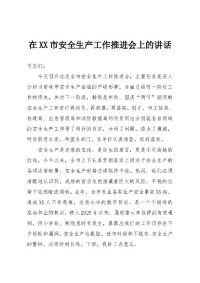 / 【七哥公文】2025年:在XX市安全生产工作推进会上的讲话+更多免费公文+VX:QiGeGongWen2024