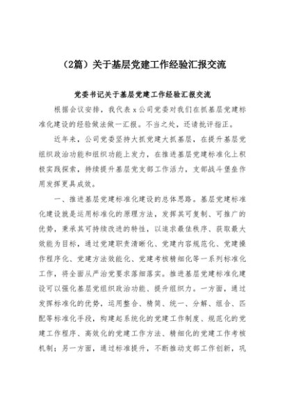 【七哥公文】2025年:(2篇)关于基层党建工作经验汇报交流+更多免费公文+VX:QiGeGongWen2024