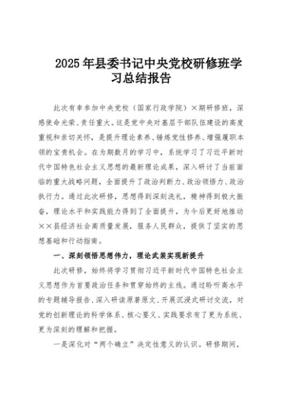 / 【七哥公文】2025年:2025年县委书记中央党校研修班学习总结报告+更多免费公文+VX:QiGeGongWen2024