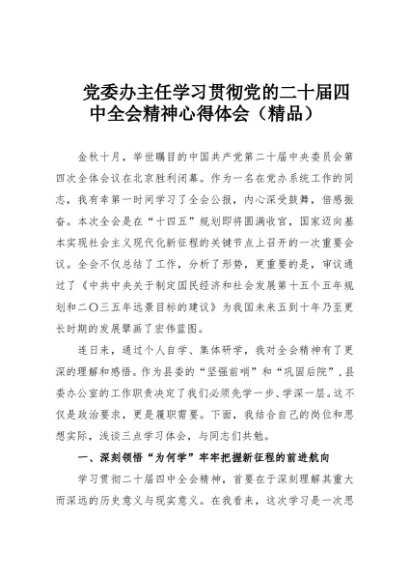【七哥公文】2025年:党委办主任学习贯彻党的二十届四中全会精神心得体会(精品)+更多免费公文+VX:QiGeGongWen2024