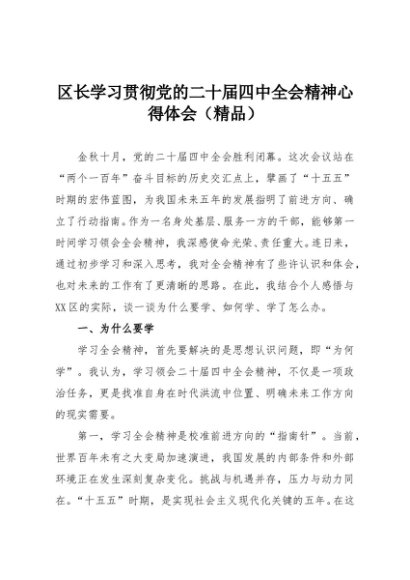 / 【七哥公文】2025年:区长学习贯彻党的二十届四中全会精神心得体会(精品)+更多免费公文+VX:QiGeGongWen2024