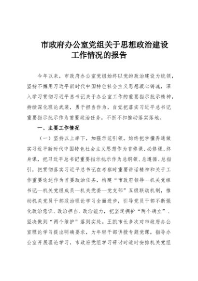 / 【七哥公文】2025年:市政府办公室党组关于思想政治建设工作情况的报告+更多免费公文+VX:QiGeGongWen2024