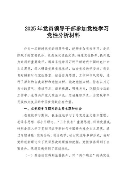 / 【七哥公文】2025年:2025年党员领导干部参加党校学习党性分析材料+更多免费公文+VX:QiGeGongWen2024
