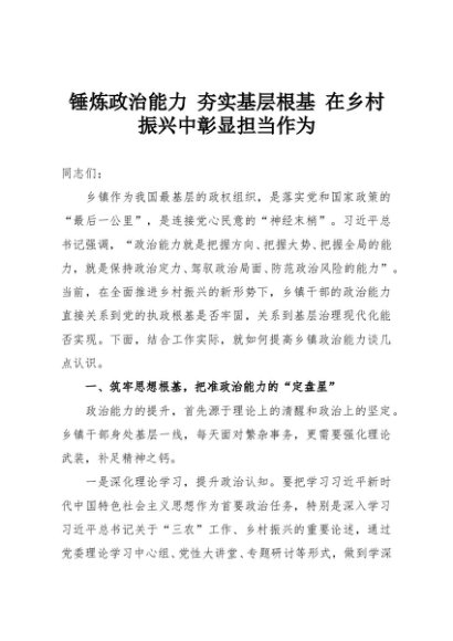 【七哥公文】2025年:锤炼政治能力 夯实基层根基 在乡村振兴中彰显担当作为+更多免费公文+VX:QiGeGongWen2024