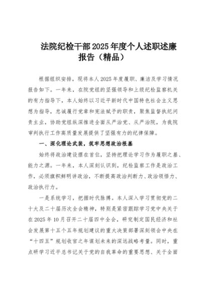 / 【七哥公文】2025年:法院纪检干部2025年度个人述职述廉报告(精品)+更多免费公文+VX:QiGeGongWen2024