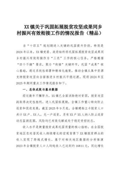 【七哥公文】2025年:XX镇关于巩固拓展脱贫攻坚成果同乡村振兴有效衔接工作的情况报告(精品)+更多免费公文+VX:QiGeGongWen2024