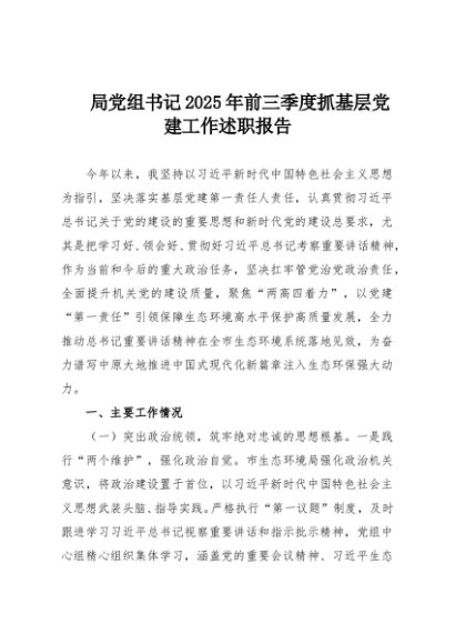 【七哥公文】2025年:局党组书记2025年前三季度抓基层党建工作述职报告+更多免费公文+VX:QiGeGongWen2024