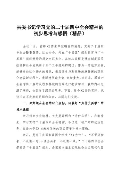 【七哥公文】2025年:县委书记学习党的二十届四中全会精神的初步思考与感悟(精品)+更多免费公文+VX:QiGeGongWen2024