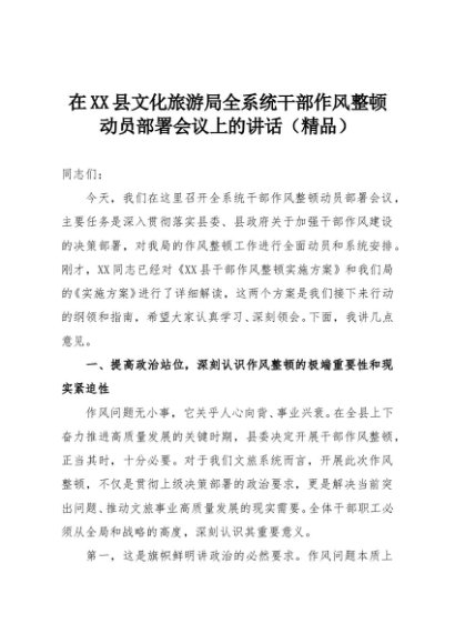 【七哥公文】2025年:在XX县文化旅游局全系统干部作风整顿动员部署会议上的讲话(精品)+更多免费公文+VX:QiGeGongWen2024
