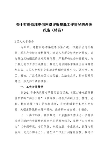 【七哥公文】2025年:关于打击治理电信网络诈骗犯罪工作情况的调研报告(精品)+更多免费公文+VX:QiGeGongWen2024