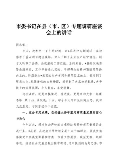 / 【七哥公文】2025年:市委书记在县(市、区)专题调研座谈会上的讲话+更多免费公文+VX:QiGeGongWen2024