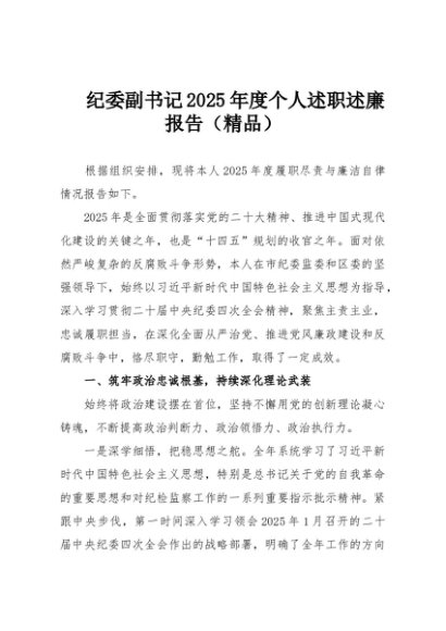 / 【七哥公文】2025年:纪委副书记2025年度个人述职述廉报告(精品)+更多免费公文+VX:QiGeGongWen2024