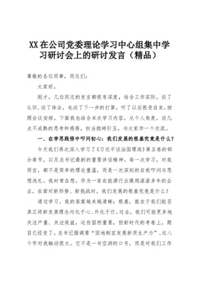 【七哥公文】2025年:XX在公司党委理论学习中心组集中学习研讨会上的研讨发言(精品)+更多免费公文+VX:QiGeGongWen2024