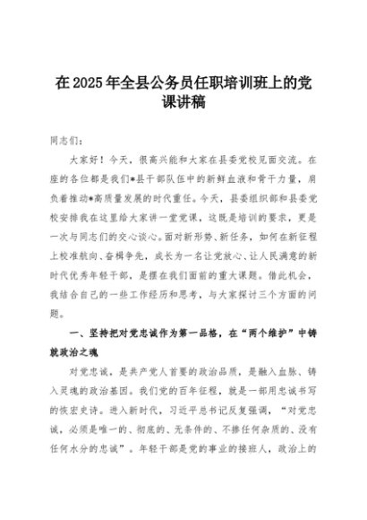 / 【七哥公文】2025年:在2025年全县公务员任职培训班上的党课讲稿+更多免费公文+VX:QiGeGongWen2024