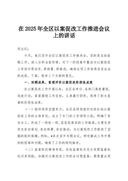 / 【七哥公文】2025年:在2025年全区以案促改工作推进会议上的讲话+更多免费公文+VX:QiGeGongWen2024