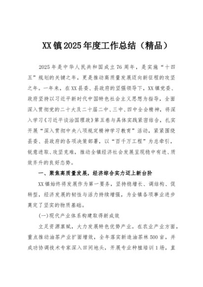 / 【七哥公文】2025年:XX镇2025年度工作总结(精品)+更多免费公文+VX:QiGeGongWen2024