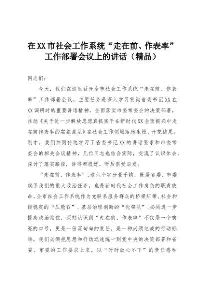 【七哥公文】2025年:在XX市社会工作系统“走在前、作表率”工作部署会议上的讲话(精品)+更多免费公文+VX:QiGeGongWen2024