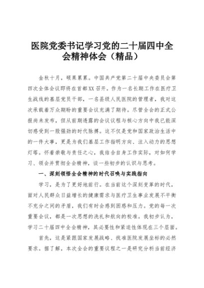 / 【七哥公文】2025年:医院党委书记学习党的二十届四中全会精神体会(精品)+更多免费公文+VX:QiGeGongWen2024