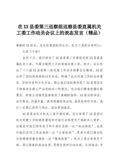【七哥公文】2025年:在XX县委第三巡察组巡察县委直属机关工委工作动员会议上的表态发言(精品)+更多免费公文+VX:QiGeGongWen2024