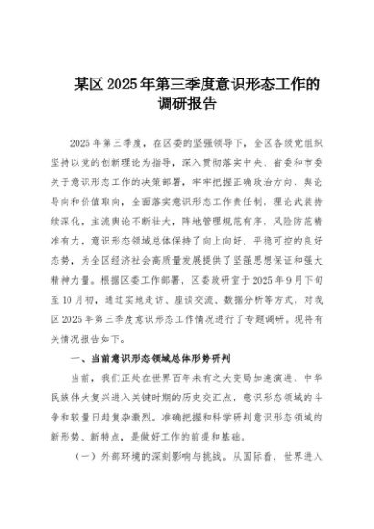 / 【七哥公文】2025年:某区2025年第三季度意识形态工作的调研报告+更多免费公文+VX:QiGeGongWen2024