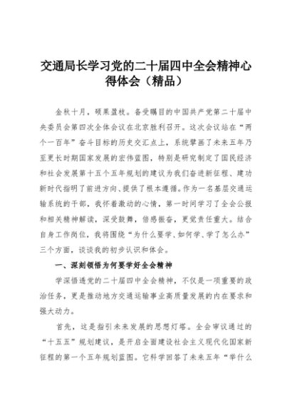 / 【七哥公文】2025年:交通局长学习党的二十届四中全会精神心得体会(精品)+更多免费公文+VX:QiGeGongWen2024