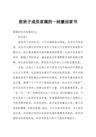 【七哥公文】2025年:致班子成员家属的一封廉洁家书+更多免费公文+VX:QiGeGongWen2024