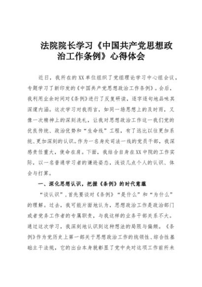 【七哥公文】2025年:法院院长学习《中国共产党思想政治工作条例》心得体会+更多免费公文+VX:QiGeGongWen2024