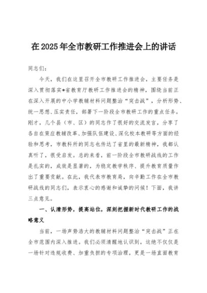 / 【七哥公文】2025年:在2025年全市教研工作推进会上的讲话+更多免费公文+VX:QiGeGongWen2024
