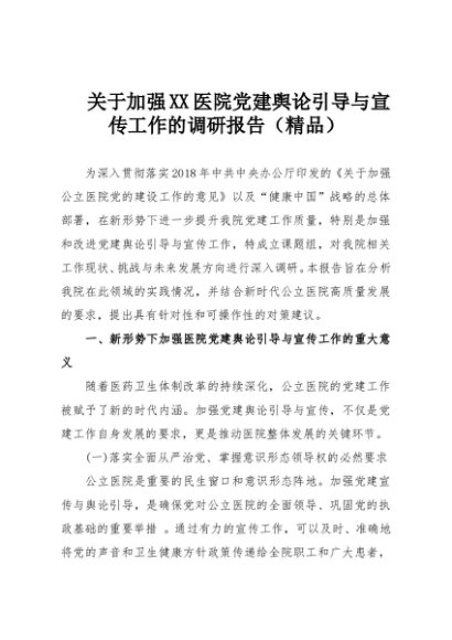【七哥公文】2025年:关于加强XX医院党建舆论引导与宣传工作的调研报告(精品)+更多免费公文+VX:QiGeGongWen2024