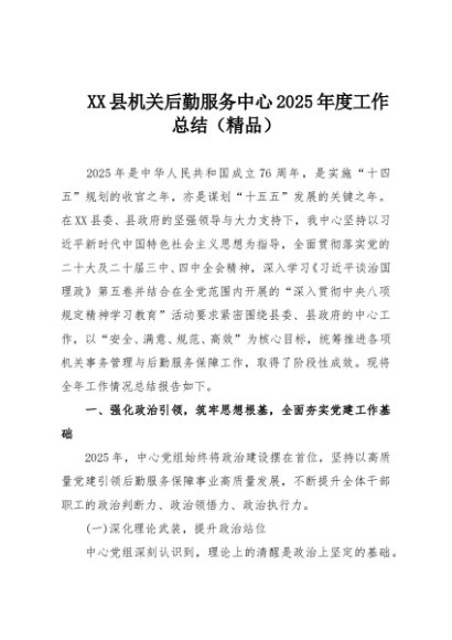【七哥公文】2025年:XX县机关后勤服务中心2025年度工作总结(精品)+更多免费公文+VX:QiGeGongWen2024
