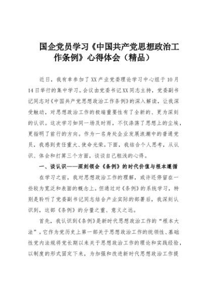 【七哥公文】2025年:国企党员学习《中国共产党思想政治工作条例》心得体会(精品)+更多免费公文+VX:QiGeGongWen2024