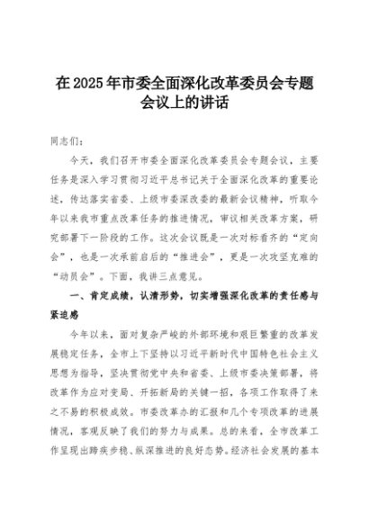 / 【七哥公文】2025年:在2025年市委全面深化改革委员会专题会议上的讲话+更多免费公文+VX:QiGeGongWen2024
