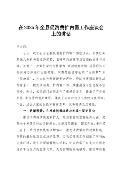/ 【七哥公文】2025年:在2025年全县促消费扩内需工作座谈会上的讲话+更多免费公文+VX:QiGeGongWen2024