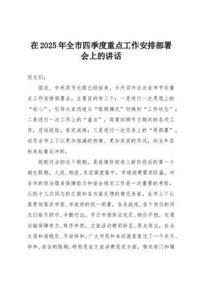 / 【七哥公文】2025年:在2025年全市四季度重点工作安排部署会上的讲话+更多免费公文+VX:QiGeGongWen2024