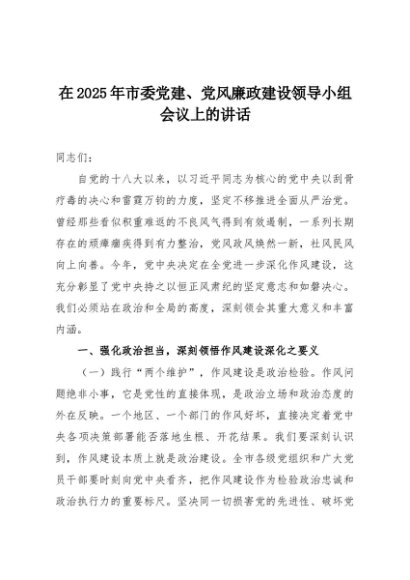 【七哥公文】2025年:在2025年市委党建、党风廉政建设领导小组会议上的讲话+更多免费公文+VX:QiGeGongWen2024