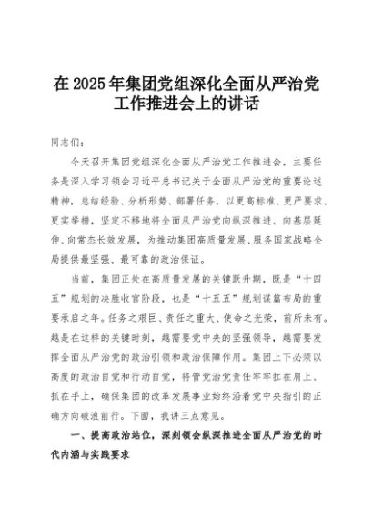 【七哥公文】2025年:在2025年集团党组深化全面从严治党工作推进会上的讲话+更多免费公文+VX:QiGeGongWen2024