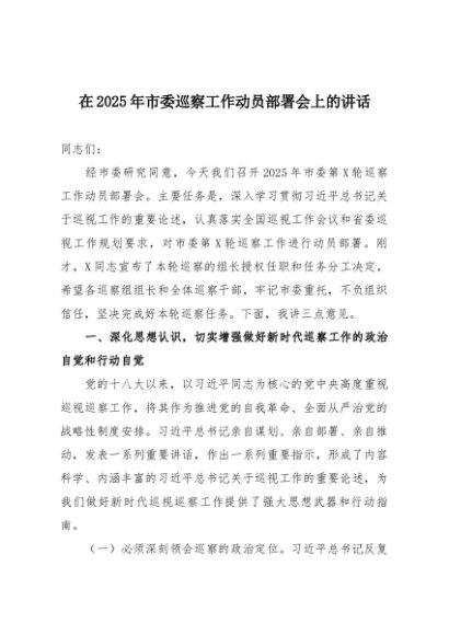 / 【七哥公文】2025年:在2025年市委巡察工作动员部署会上的讲话+更多免费公文+VX:QiGeGongWen2024