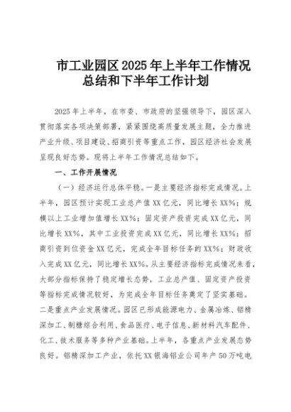 【七哥公文】2025年:市工业园区2025年上半年工作情况总结和下半年工作计划+更多免费公文+VX:QiGeGongWen2024