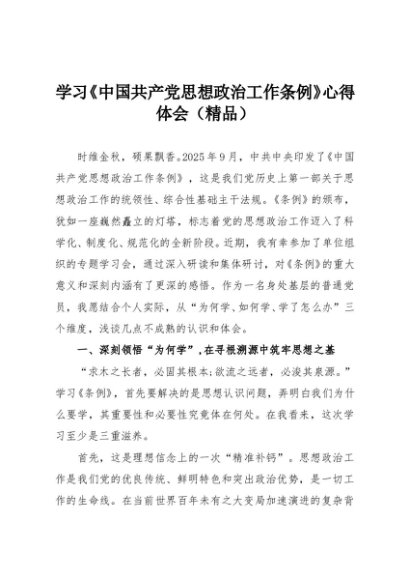 【七哥公文】2025年:学习《中国共产党思想政治工作条例》心得体会(精品)+更多免费公文+VX:QiGeGongWen2024