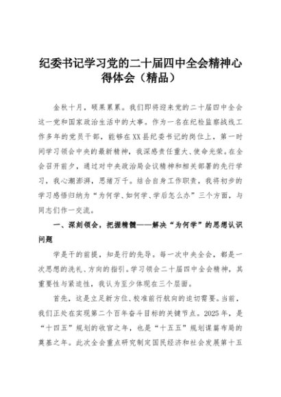 【七哥公文】2025年:纪委书记学习党的二十届四中全会精神心得体会(精品)+更多免费公文+VX:QiGeGongWen2024