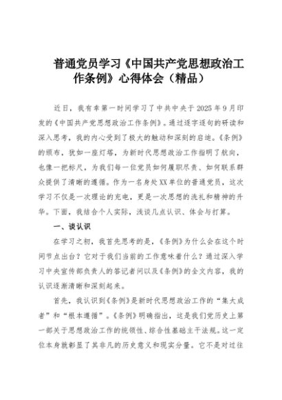 【七哥公文】2025年:普通党员学习《中国共产党思想政治工作条例》心得体会(精品)+更多免费公文+VX:QiGeGongWen2024
