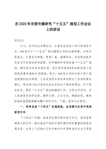 【七哥公文】2025年:在2025年市委专题研究“十五五”规划工作会议上的讲话+更多免费公文+VX:QiGeGongWen2024
