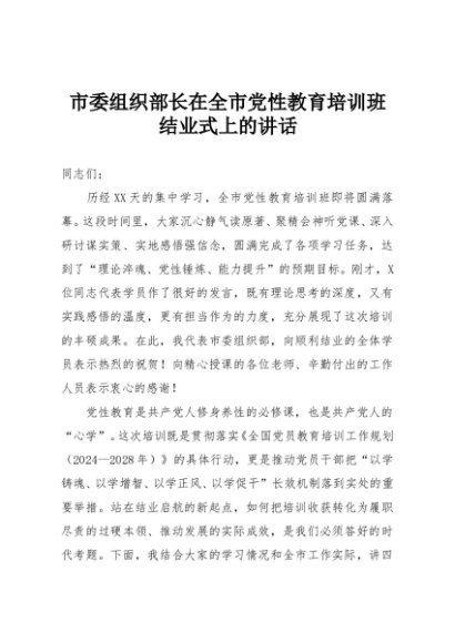 / 【七哥公文】2025年:市委组织部长在全市党性教育培训班结业式上的讲话+更多免费公文+VX:QiGeGongWen2024