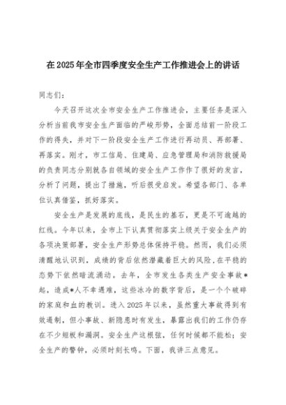 【七哥公文】2025年:在2025年全市四季度安全生产工作推进会上的讲话+更多免费公文+VX:QiGeGongWen2024