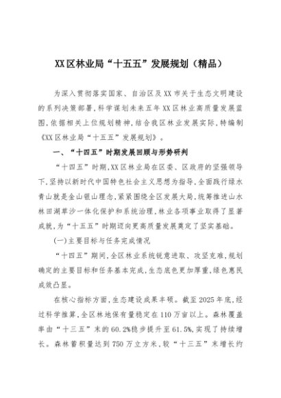 / 【七哥公文】2025年:XX区林业局“十五五”发展规划(精品)+更多免费公文+VX:QiGeGongWen2024
