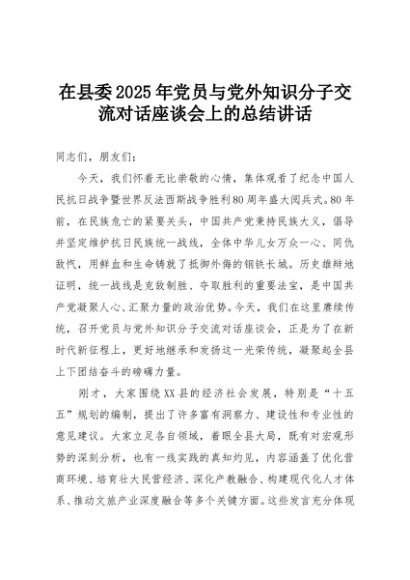 【七哥公文】2025年:在县委2025年党员与党外知识分子交流对话座谈会上的总结讲话+更多免费公文+VX:QiGeGongWen2024