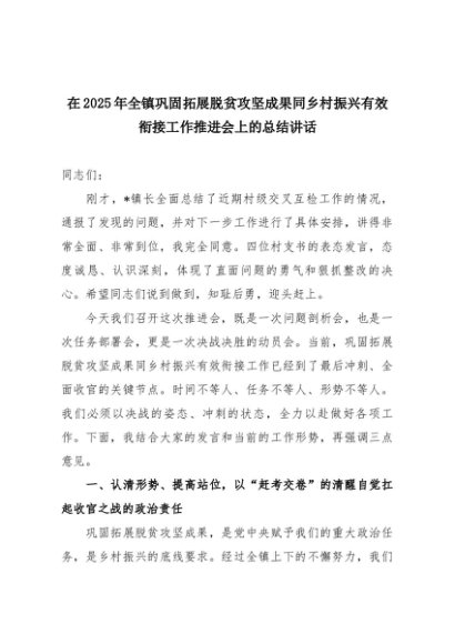 【七哥公文】2025年:在2025年全镇巩固拓展脱贫攻坚成果同乡村振兴有效衔接工作推进会上的总结讲话+更多免费公文+VX:QiGeGongWen2024