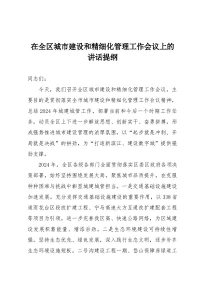 / 【七哥公文】2025年:在全区城市建设和精细化管理工作会议上的讲话提纲+更多免费公文+VX:QiGeGongWen2024