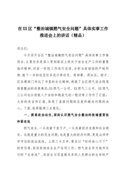 【七哥公文】2025年:在XX区“整治城镇燃气安全问题”具体实事工作推进会上的讲话(精品)+更多免费公文+VX:QiGeGongWen2024